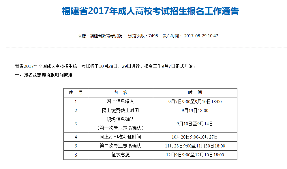 我省2017年全国成人高校招生统一考试将于10月28日、29日进行,报名工作9月7日正式开始。