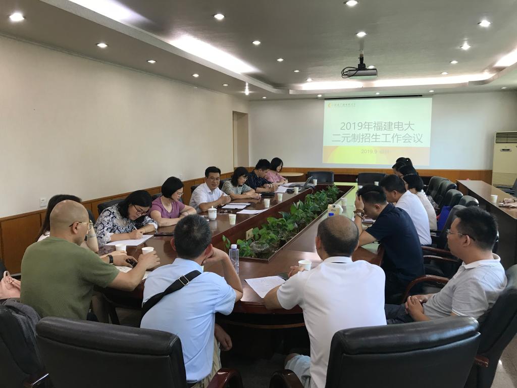 9月6日下午,继续教育学院在左海校区召开“二元制”招生工作会议,继续教育学院院长余星辉、学院副院长李金钗、陈秀清,各联办教学点招生负责人及学院相关人员参加了会议。会议由余星辉主持。