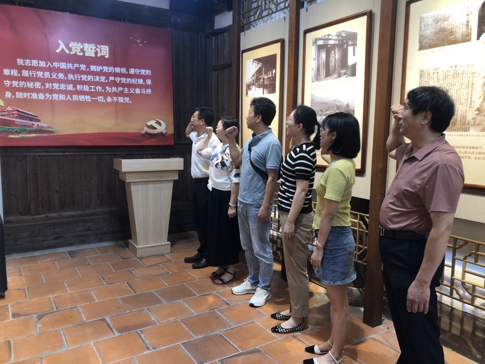 会后,全体党员干部赴三坊七巷参观中共福州市委旧址、新四军纪念馆,寻访革命历史足迹,缅怀共产党先辈在风雨岁月中的艰辛斗争历程,感悟革命先辈坚定的理想信念和坚贞不屈的革命精神。在旧址馆的党旗前,支部书记余星辉领誓,重温入党誓词,全体党员高举右手,紧握拳头,一句一字,铿锵有力,表达着坚定的入党初心、牢记使命的信念和决心,并一致表示要牢记教育初心,不辱教育使命,做强做大自主办学规模,加快建设高质量的学历继续教育体系。